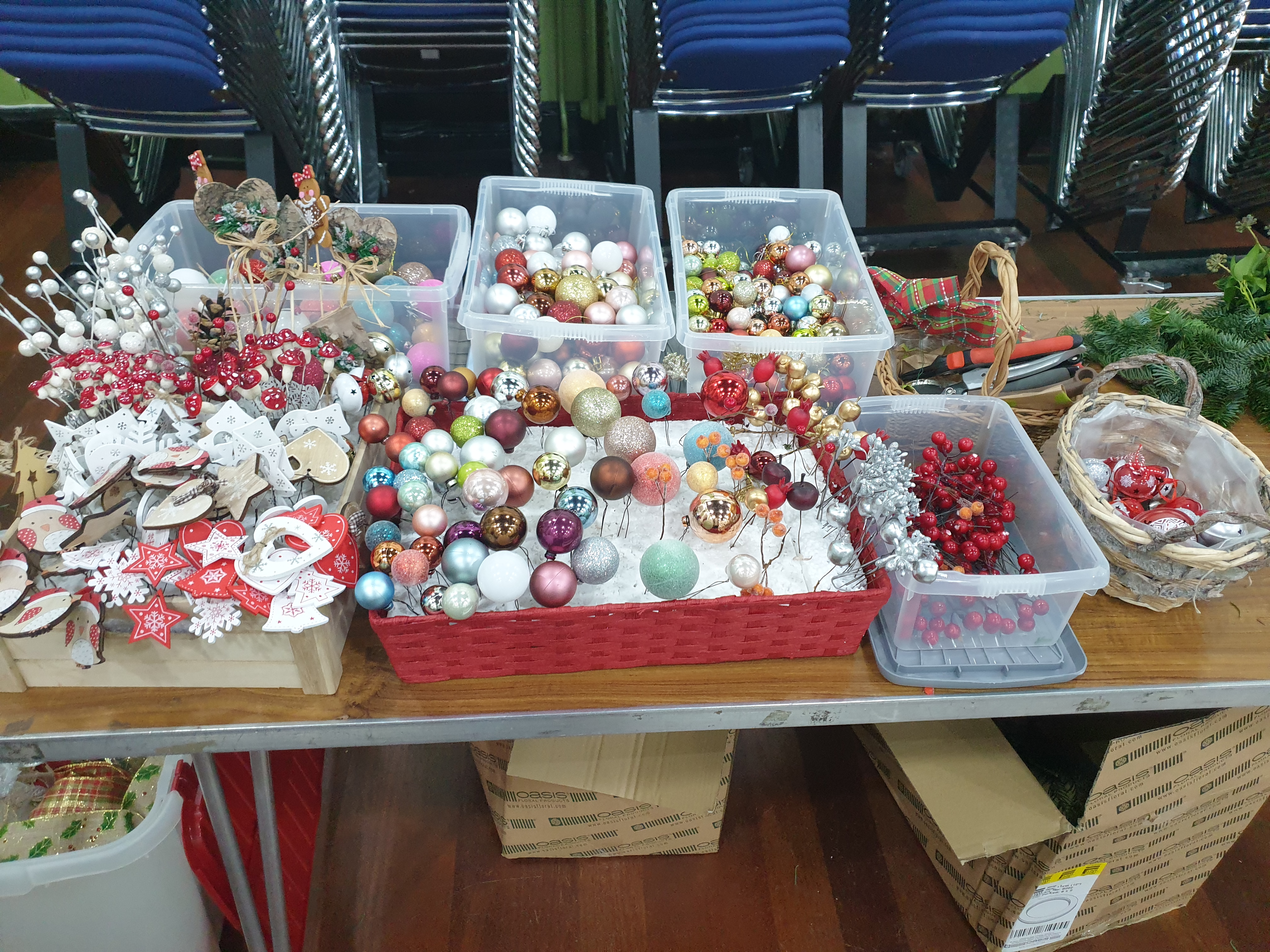 Expertly guided by Florist Heather (Flowers By Heather | Facebook) we learned how to built up the greenery before choosing from an extensive assortment of natural and ready made decorations.