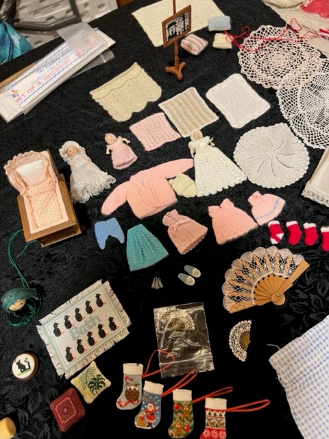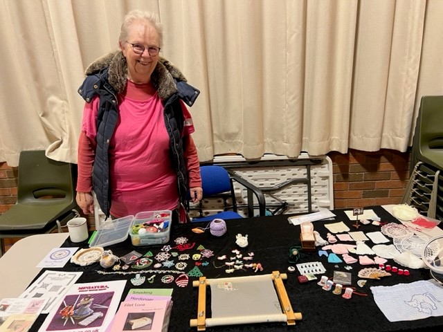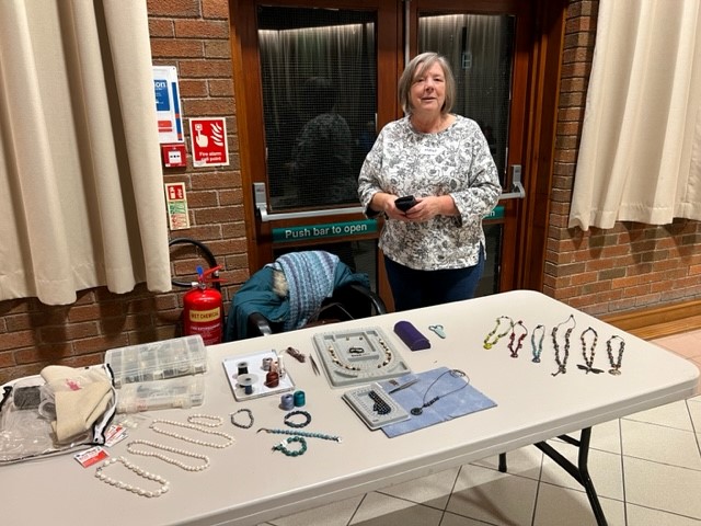 Our November meeting was a very informative and enjoyable evening with several of our members sharing their hobbies and interests with us all. Mags shared her jewellery making and her pearl knotting necklaces and members had the chance to knot a necklace. Liz showed us her very intricate dolls house accessories and clothing. Ruth explained the concept of travelling books and shared some examples. Lavinia explained her Geo caching hobby and Bridget talked us through the intricacies of being a bee keeper.