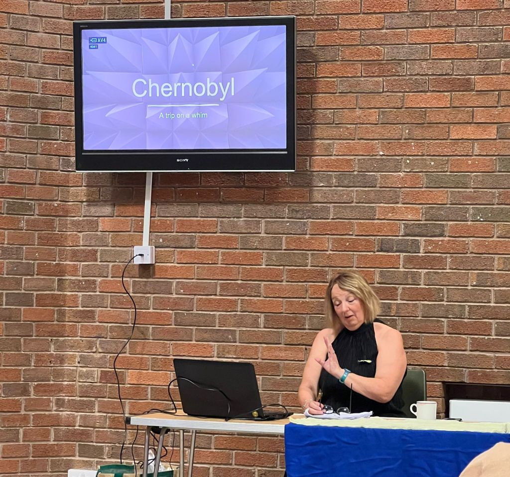 Allison Emery joined us at our monthly meeting last wee to talk about her visit to Chernobyl a – site of the biggest nuclear disaster in history in 1986. Her visit (well before the current war in the Ukraine) started of in Kiev in an old communist era hotel (think army training camp style rooms). Discovering Kiev mainly by Ueber Allison discovered a historic landmarks such as the cathedral, visited the opera and managed to purchase essential tourist souvenirs – an army fur hat and a roll of Putin toilet paper…