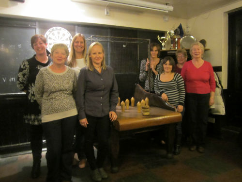 The Bricklayer’s Arms at Kibworth hosted a WI Skittles evening on Friday 11 May. Members had great fun playing both table and long alley skittles. We found out that a ‘cheese’ is a hard, wooden lump that you throw to knock the skittles down: underarm, overarm and sideways all being tried with varying success! A couple of people had played before and they happily explained the rules and scoring. A simple, but tasty, pub supper completed the evening.